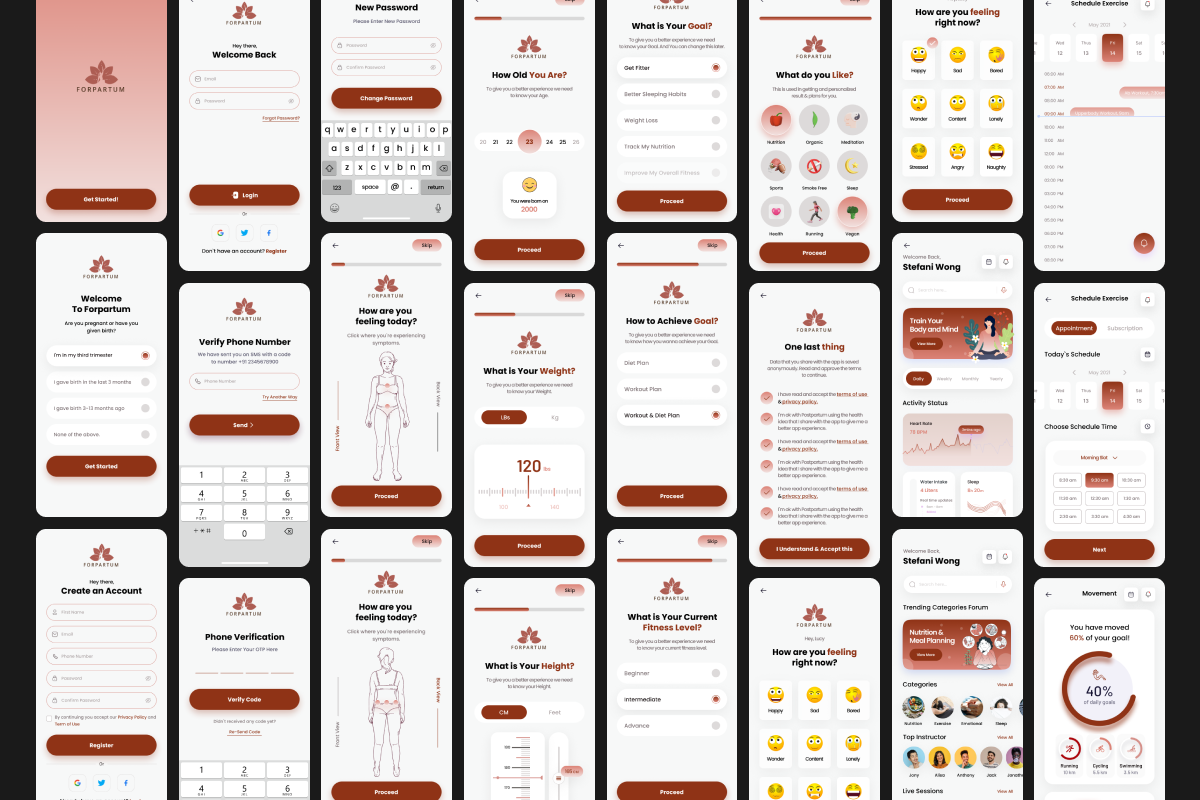 Forpartum’s visual language was designed to feel calm, nurturing, and human reflecting the emotional sensitivity of motherhood.