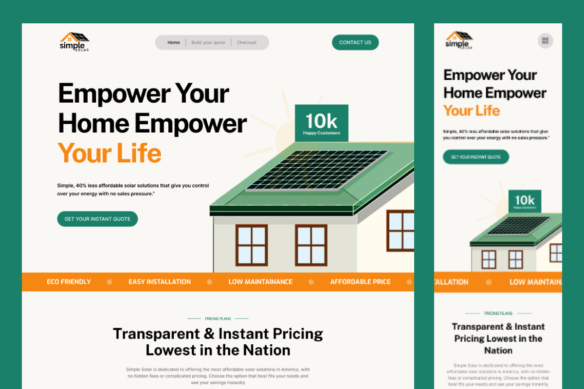 The website was designed to communicate affordability, trust, and ease from the very first interaction. By combining strong value propositions with instant pricing clarity, the platform positions Simple Solar as a customer-first solar provider while encouraging users to take action through instant quote requests.