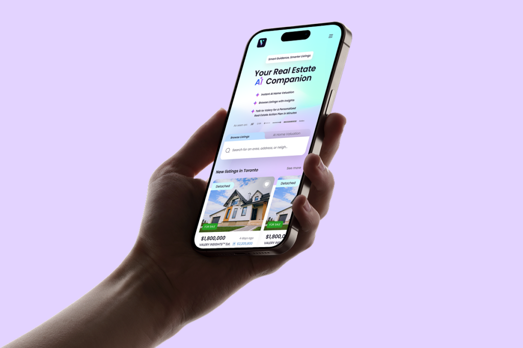 As Canada’s first AI-powered real estate brokerage, Valery blends advanced artificial intelligence with human expertise to guide buyers and sellers through one of the most complex financial decisions of their lives. Our role was to design a platform that doesn’t overwhelm users with data, but instead turns intelligence into clarity.